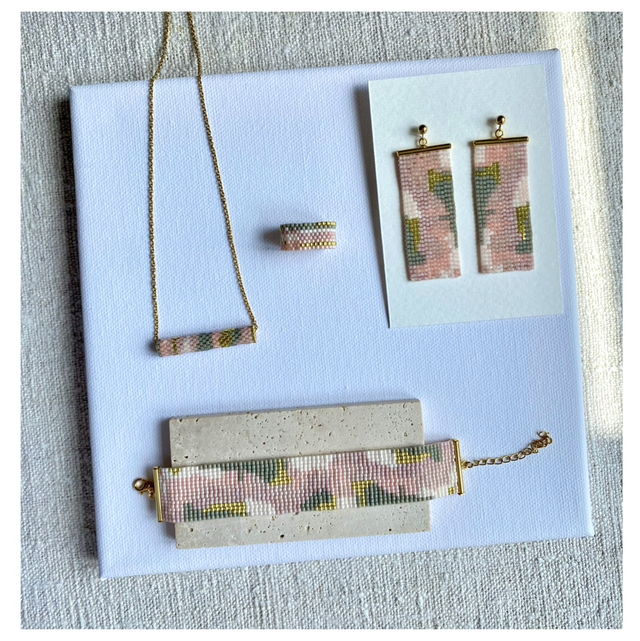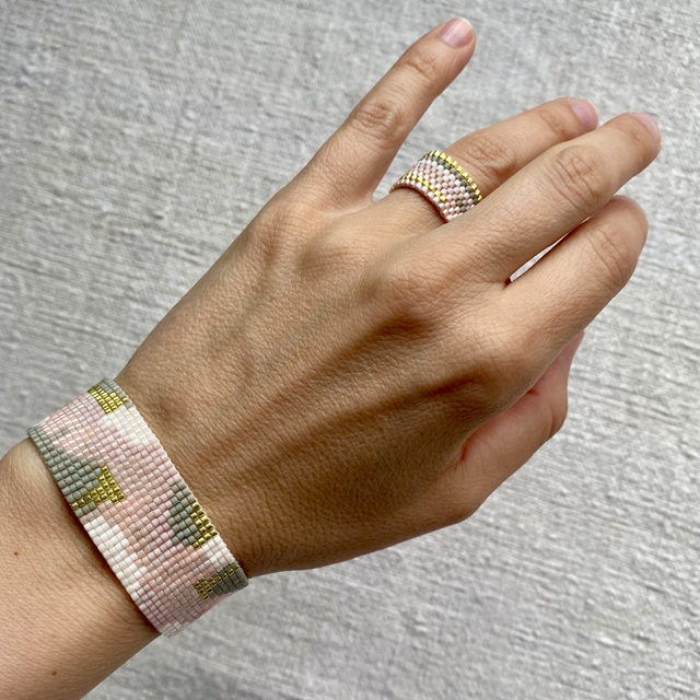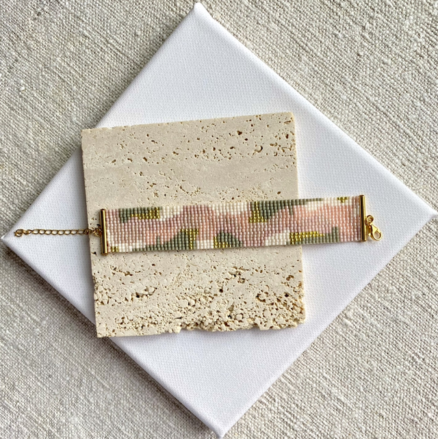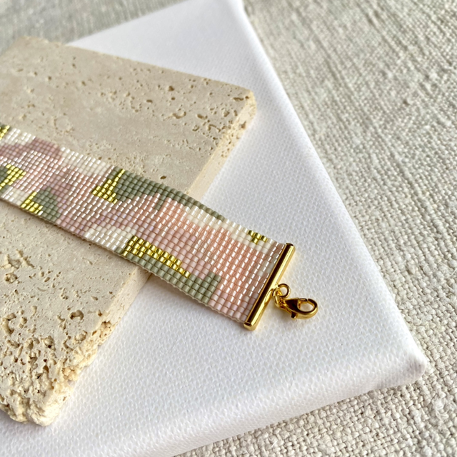 Handwoven bracelet, made of delicate Japanese glass beads and gold filled and gold pleated findings.
