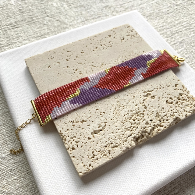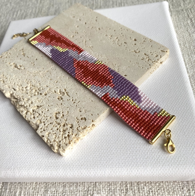 Handwoven bracelet, made of delicate Japanese glass beads and gold filled and gold pleated findings.
