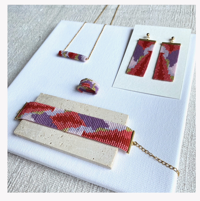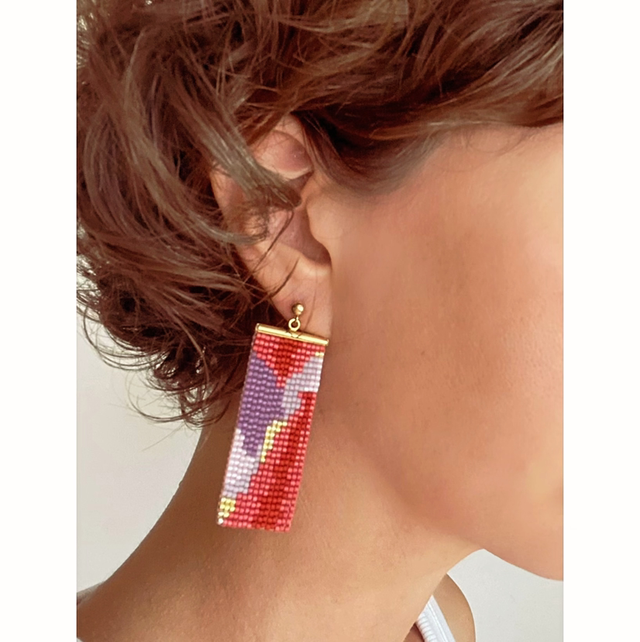Handwoven glass bead earring made of delicate Japanese glass beads and gold pleated and gold filled findings.